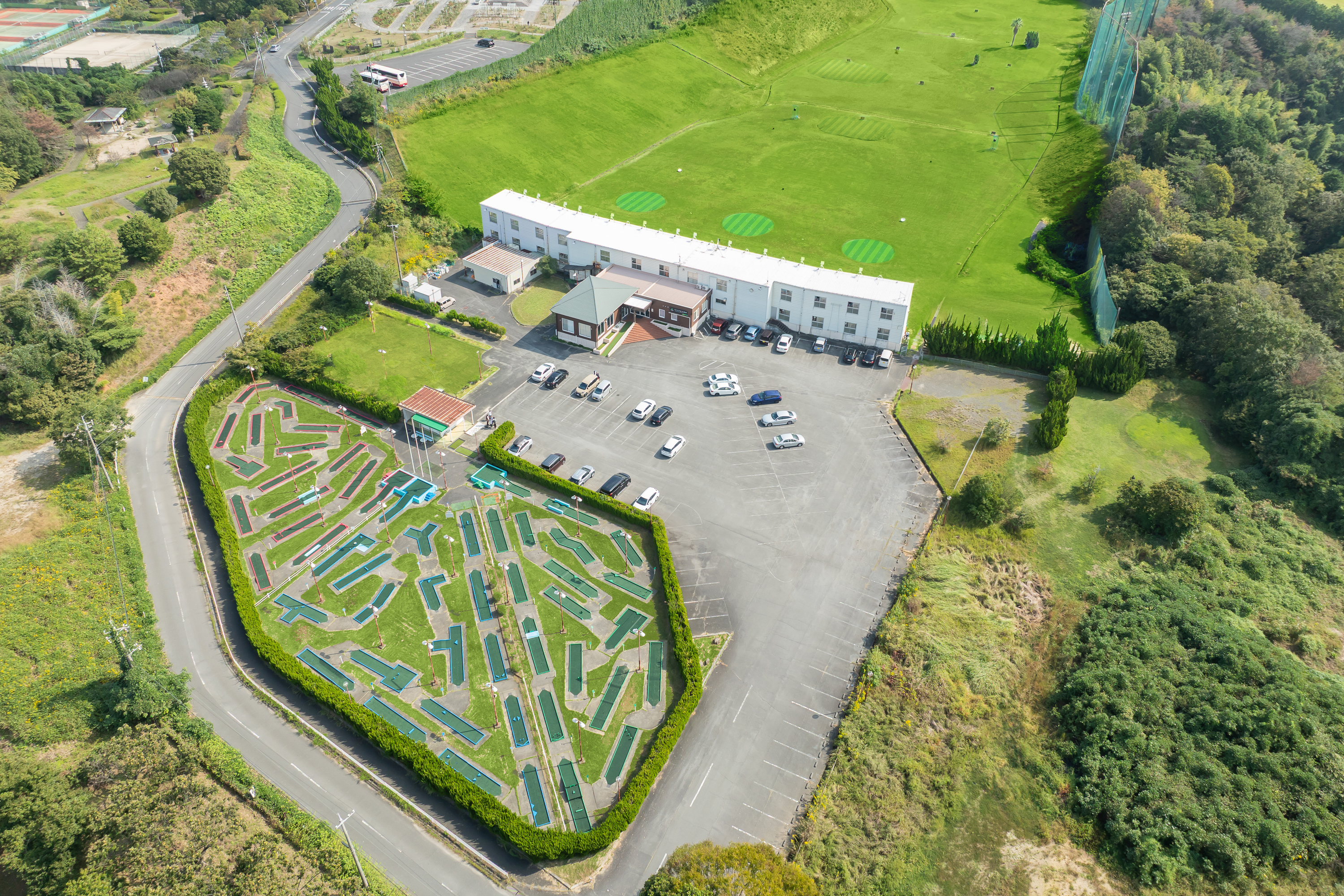 山口県の東端、和木町に位置するAG蜂ヶ峯は、隣接する岩国市内および大竹市内(広島県)から約20分でアクセス可能なゴルフ練習場です。県内最大級を誇る300ヤードのフィールドは、全面天然芝のフェアウェイを有し、フラットで横幅も広く、ドライバーからアプローチまで本コースをイメージした練習がお楽しみいただけます。また、本年4月にクラブハウスのリニューアルを行った当社運営の「和木ゴルフ倶楽部」と隣接しており、両施設の打席が向かい合うユニークな作りになっています。