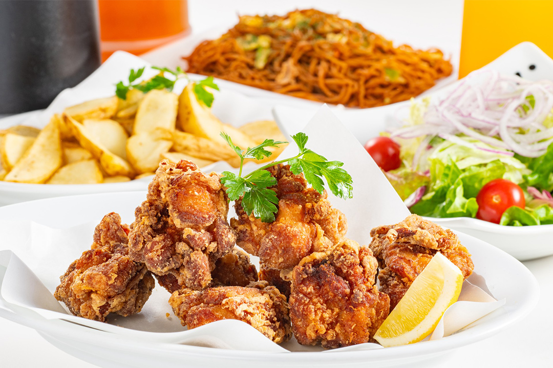 6品プラン ¥3,300 (サーモンサラダ、ポテトフライ、唐揚げ、焼きそば、ピザ、デザート、各組1本ドリンクピッチャー) 5品プラン¥2,420 (サーモンサラダ、ポテトフライ、唐揚げ、焼きそば、デザート、各組1本ドリンクピッチャー) 4品プラン¥1,760 (サーモンサラダ、ポテトフライ、唐揚げ、焼きそば、各組1本ドリンクピッチャー) ケーキセット (コーヒー付) ¥1,200 ※写真は一例です。内容につきましては季節により変わる場合もございます。ご予算に応じて対応いたしますのでお気軽にご相談ください。 |