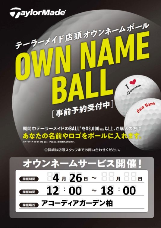 テーラーメイドオウンネームを開催します。