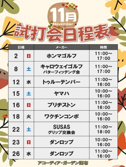 11月に開催される試打会のお知らせです。皆さまのご来場お待ちしております!