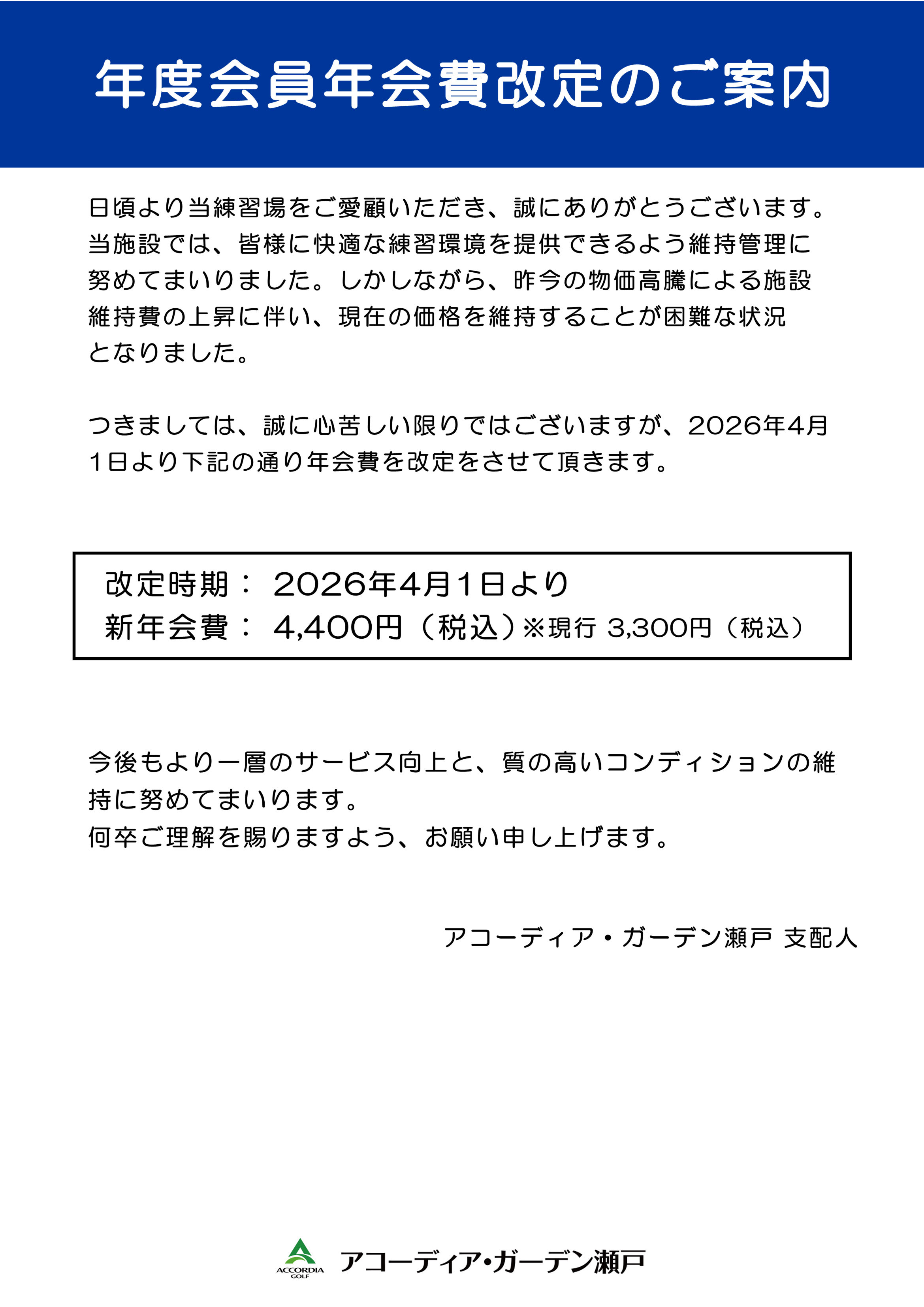 2026年4月より、年度会員年会費を改定させて頂くこととなりました。