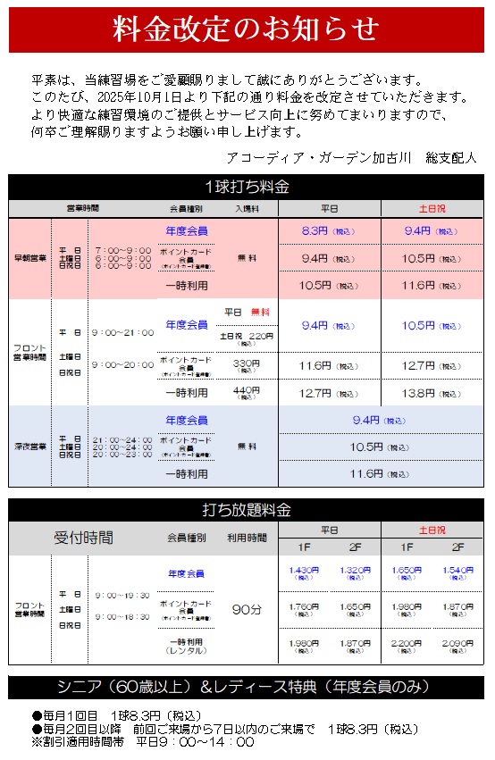 平素は、当練習場をご愛顧賜りまして誠にありがとうございます。