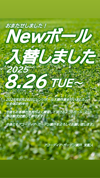 ボール50,000球(全体の半分)をNewボールに入れ替えしました!