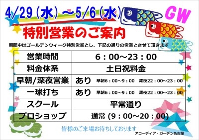 一球打ち あり(早朝6:00~9:00 深夜22:00~23:00)