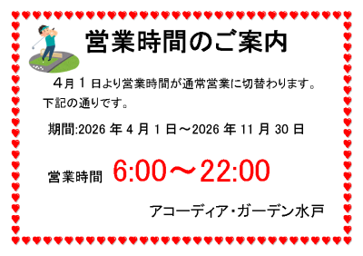 通常営業 4月~11月 6:00~22:00