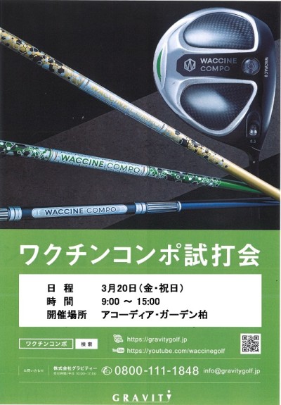 3月20日(金・祝)9:00 ~ 15:00 グラビティ試打会