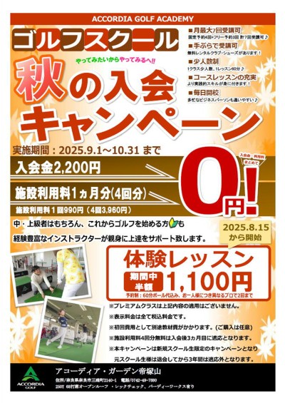 アコーディア・ガーデン帝塚山より秋のスクール新規入会キャンペーンのお知らせ致します。