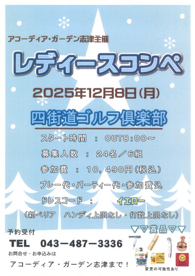 2025年12月8日(月)レディースコンペを四街道ゴルフ倶楽部にて開催いたします。