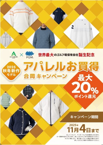 AG×PGMのアパレルお買得合同キャンペーンを開催しております。