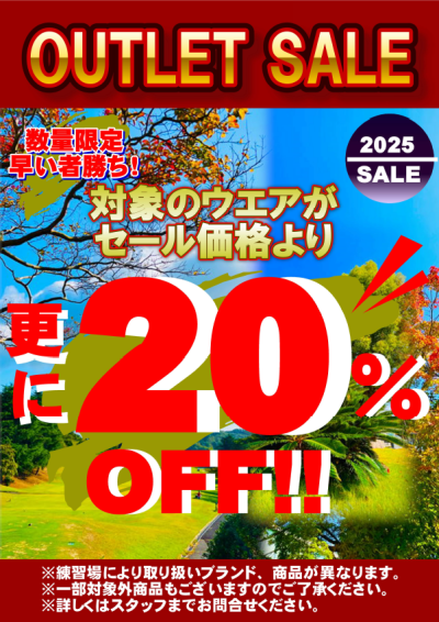 日頃のご愛顧と感謝を込めて、対象のウエアがセール価格より更に20%OFFで手に入るアウトレットセールを開催中!