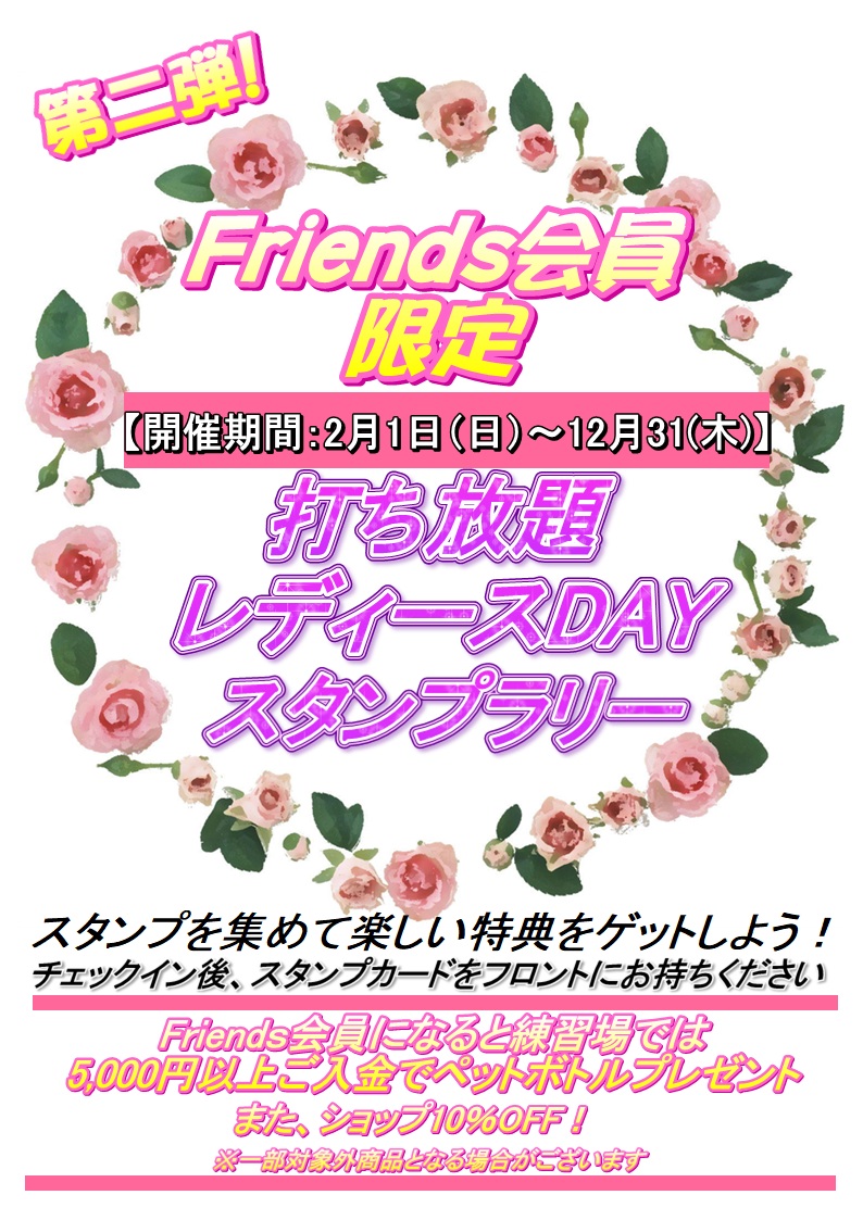 フレンズ会員のお客様を対象に、打ち放題スタンプラリーを開催中!