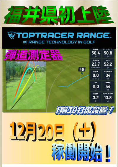 福井県初となるトップトレーサー弾道測定器が12月20日(土)に稼働いたします。1階30打席に設置。・データを活かした効率的なモード