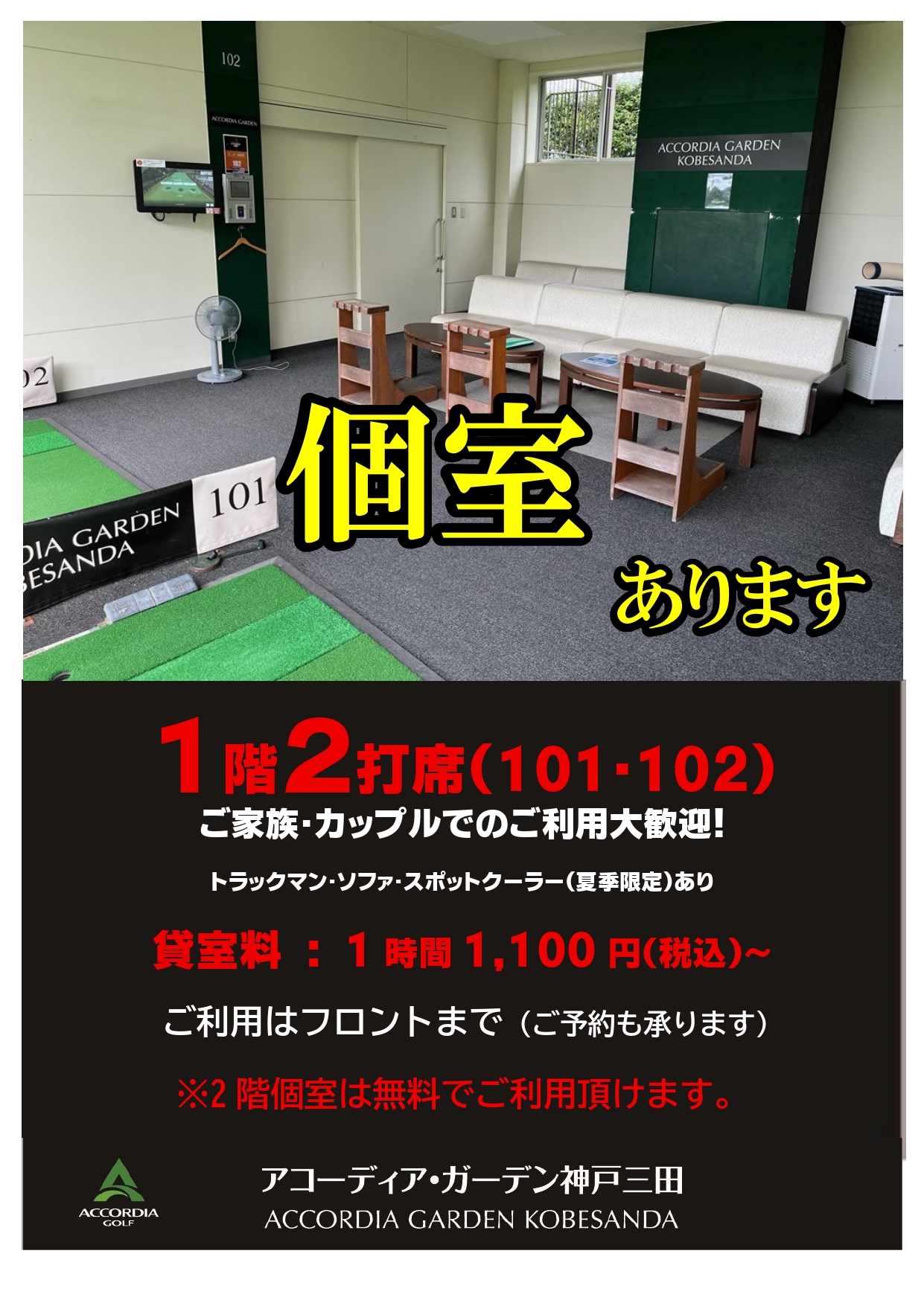 アコーディアサポートプロと一緒にプレーしながら、ワンポイントアドバイスが受けられるサービスです。