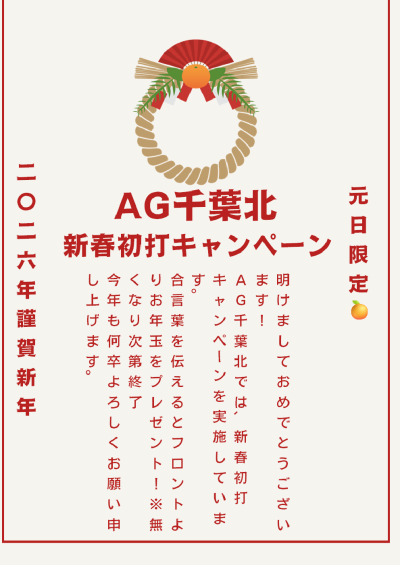 当日、フロントにて合言葉をお伝えいただいたお客様へ、ささやかなお年玉をプレゼント!