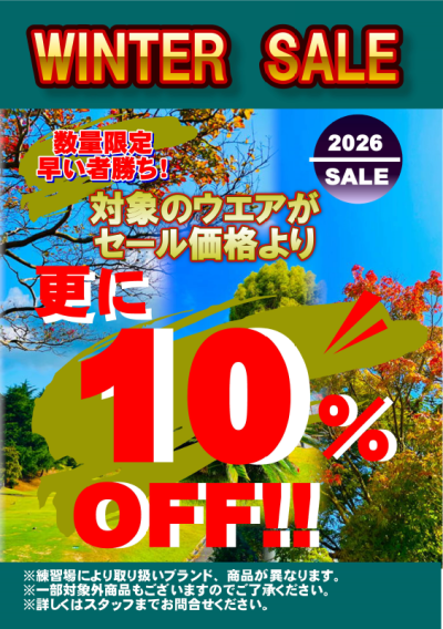 対象のウエアが特別価格より更に10%OFFで手に入るアウトレットセールを開催いたします。