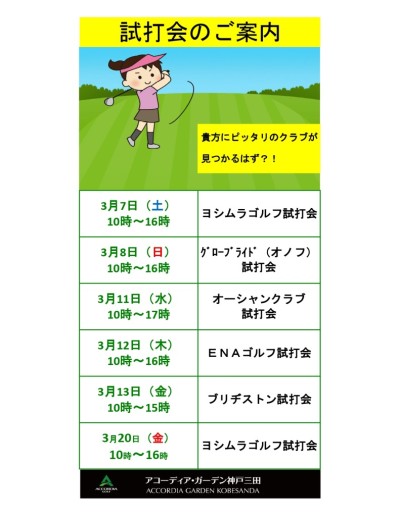 3/20(祝)ヨシムラゴルフ(10時~16時)