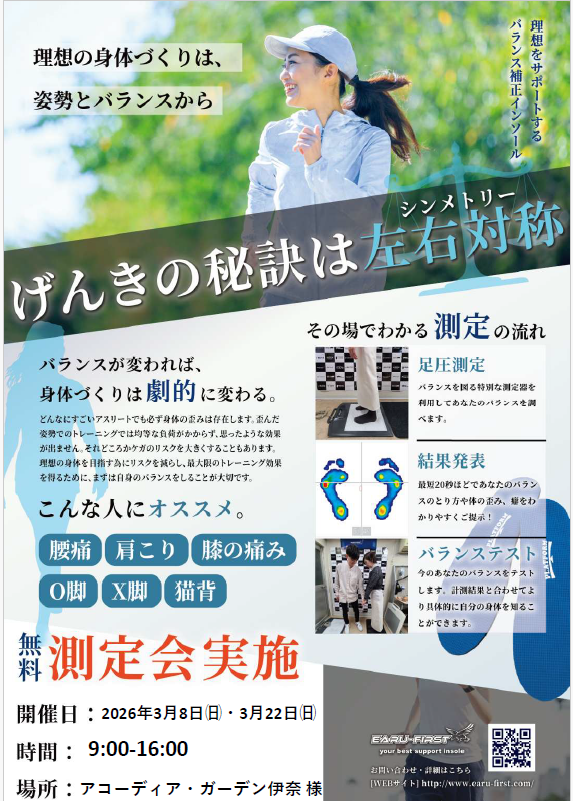 当日は専門スタッフが無料で測定、お客様に合ったインソールをご提案いたします👍