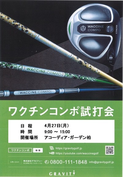 4月27日(月) 9:00 ~ 15:00 グラビティ試打会
