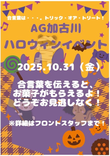 とフロントで伝えていただくとお菓子をプレゼント👻
