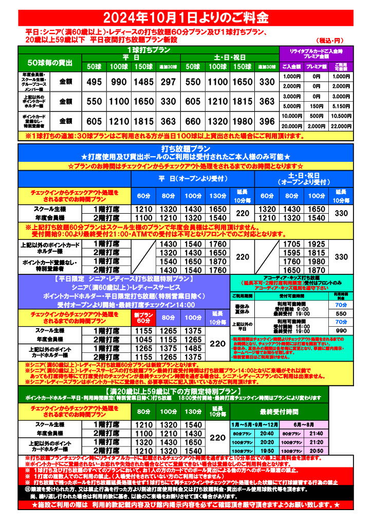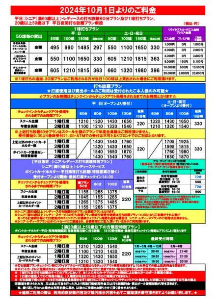 平素は当練習場をご愛顧頂き厚くお礼申し上げます。昨今の運営に関わる材料費、諸経費(光熱費等)高騰により