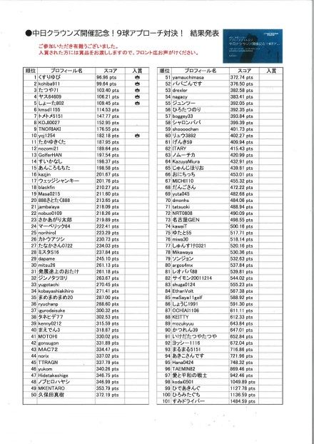中日クラウンズ開催記念!9球アプローチ対決! 結果発表
