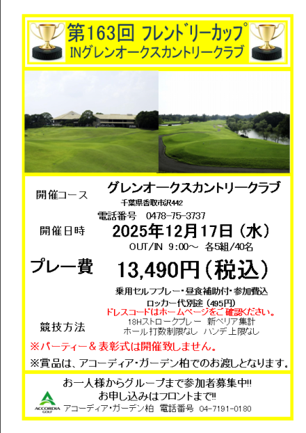 フレンドリーカップのご案内⛳アコーディア・ガーデン柏から