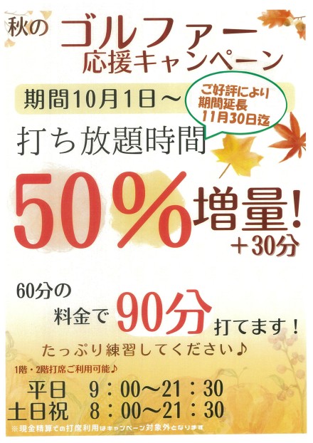 2025年10月秋のゴルファー応援キャンペーンご案内 ご好評につき11月末まで延長‼😲
