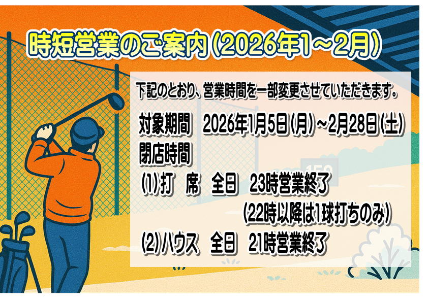 (1)打 席 全日 23時営業終了(22時以降は1球打ちのみ)