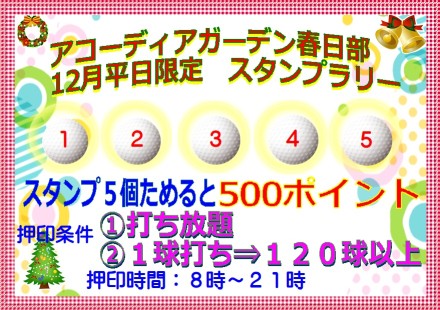 スタンプ5個貯めると500ポイント付与!12月1日から26日の平日20日間限定