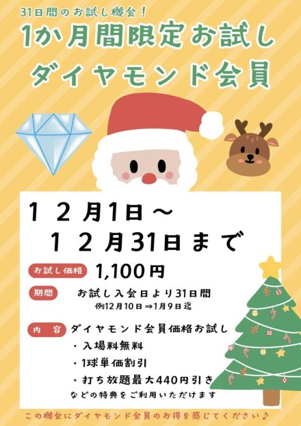 31日間!ダイヤモンド会員をお試しください!1か月間限定【 お試しダイヤモンド会員】 募集中!
