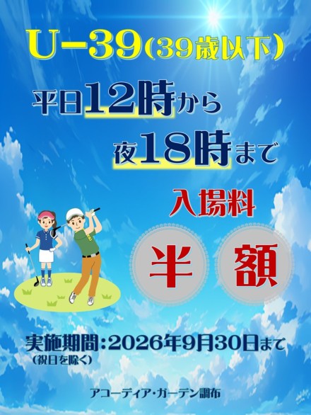 39歳以下のお客様は平日12時から18時まで入場料半額となっております。皆様のご来場お待ちしております!