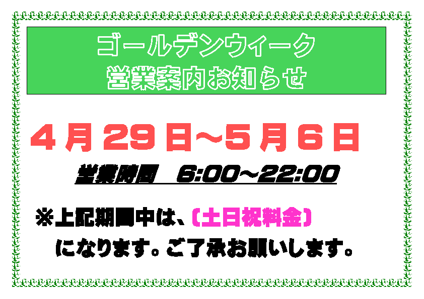 ゴールデンウィーク営業案内2026年のゴールデンウィーク営業案内です。