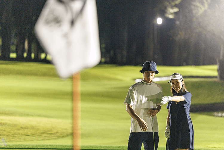 ライトアップされたゴルフ場で星空を見ながらのラウンドは、カップルやパートナーとの2サムにもおすすめです。